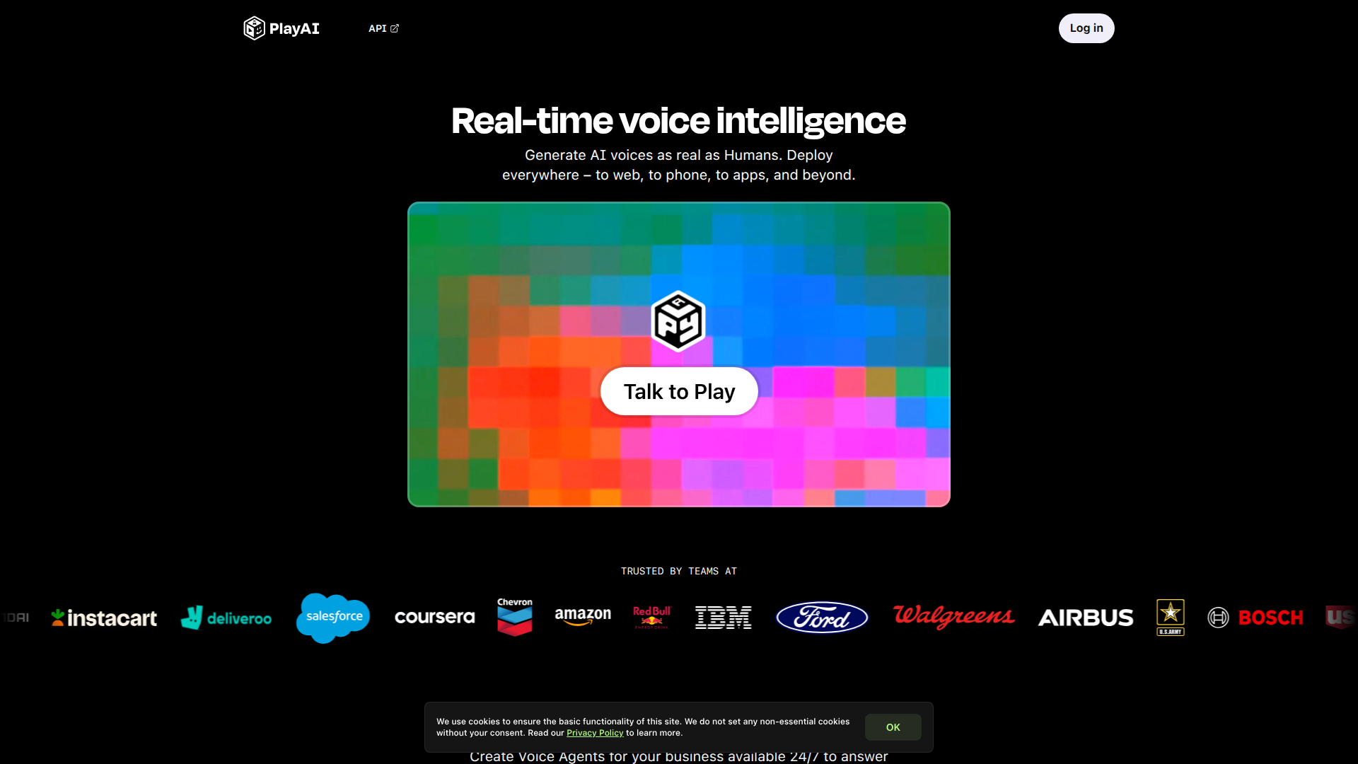 Real-time voice intelligence. Generate AI voices as real as Humans. Deploy everywhere – to web, to phone, to apps, and beyond.