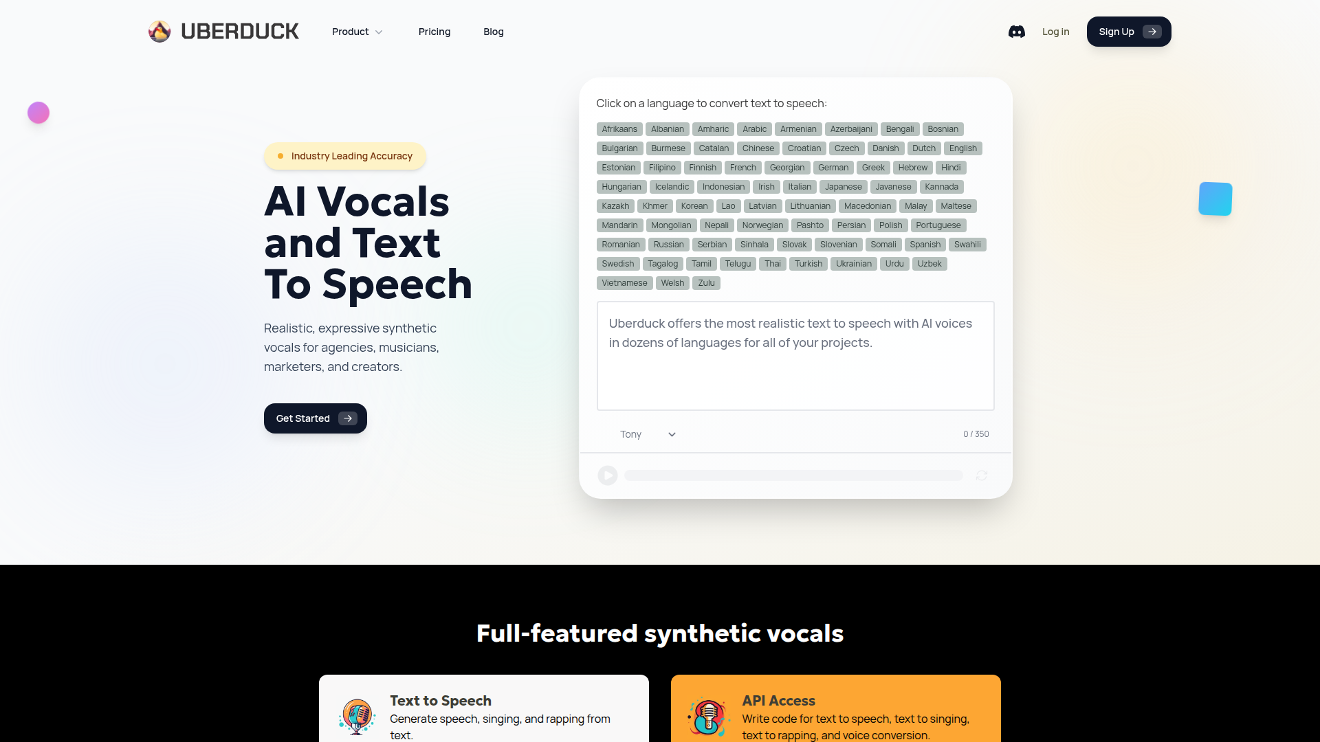 Uberduck boasts industry-leading accuracy in its synthetic vocals, making them sound realistic and expressive.